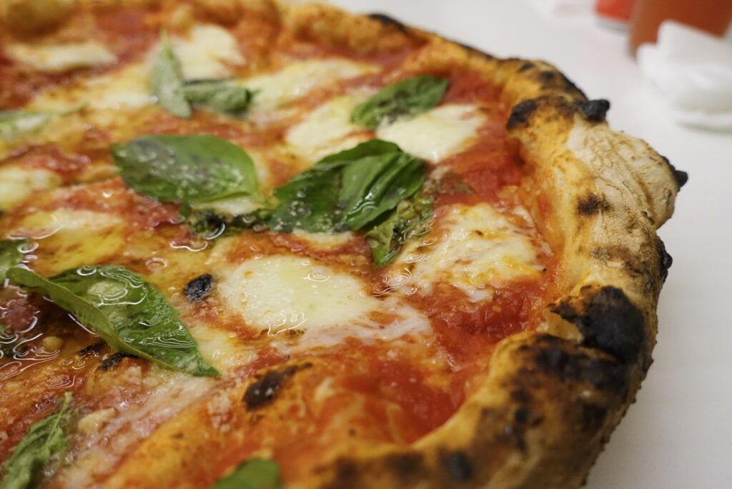 「マルゲリータ コン ブーファラ」は、トマトの酸味と水牛モッツァレラの純な甘みがオリーブオイルと絡み合い、共鳴する。