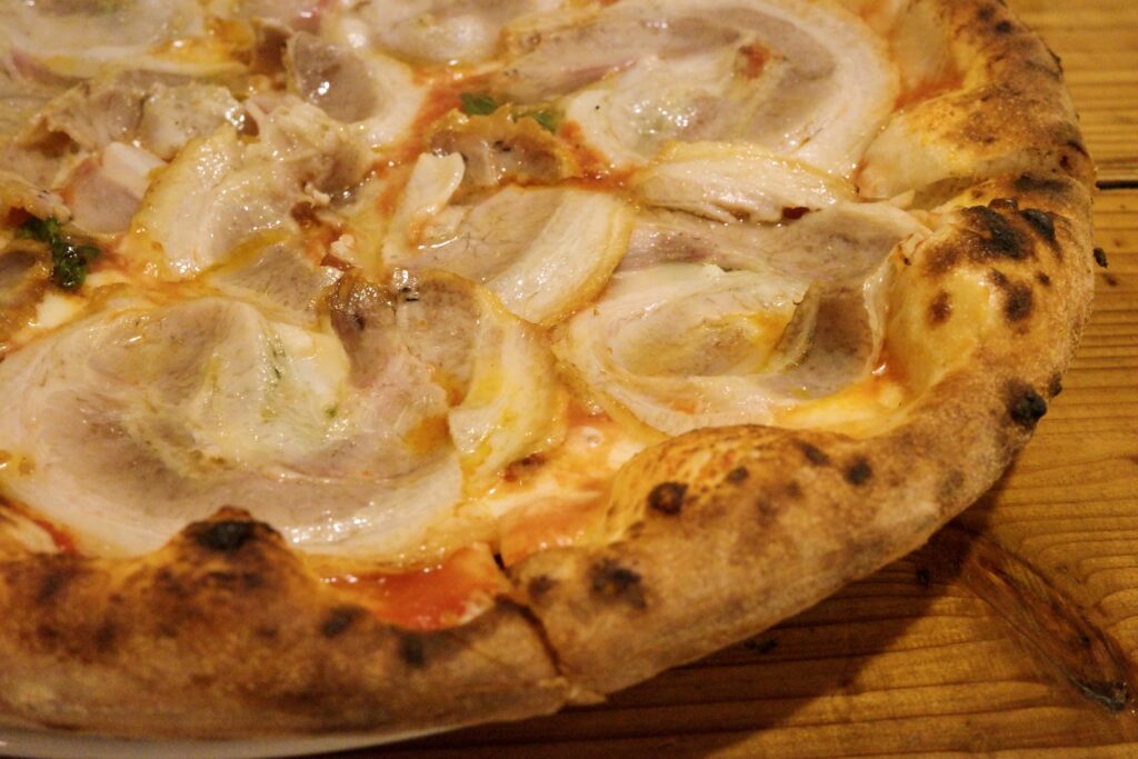 通常メニューのピッツァポルケッタと同じく、モッツァレラも燻製に変更し、辛味も欲しかったのでンドウィヤも加えた。